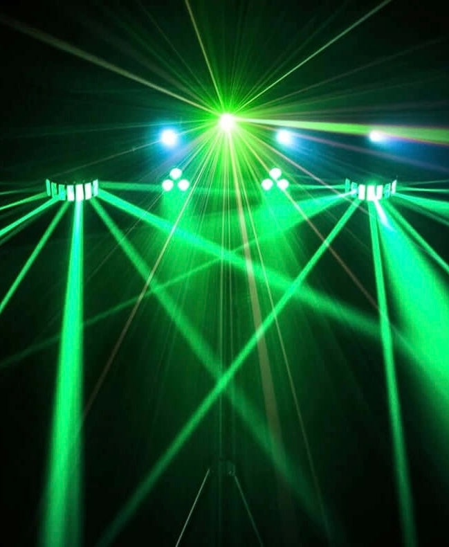 - 2 packs lights comportant 2 Derby Beam à LED, 2 PAR à LED, 4 LED pour effet Strobe et UV et 1 LASER vert et rouge 🌈